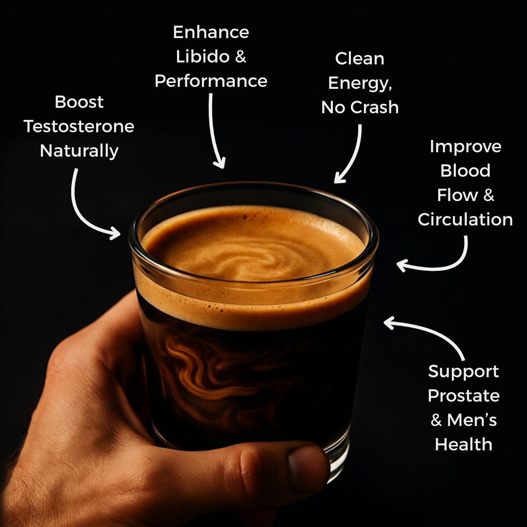 Most men notice an energy and focus boost within the first cup. The performance and vitality benefits build steadily with daily use as your body absorbs and responds to the nutrients — making consistency the key to maximum results.